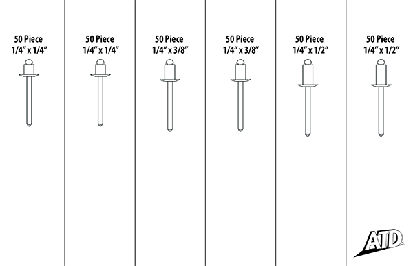 300 Pc. 1/4" Aluminum Blind Rivet Assortment