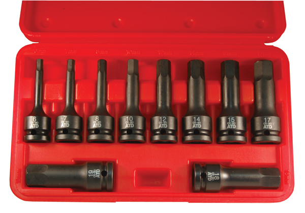 10 Pc. 1/2" Drive Metric Impact Hex Driver Set