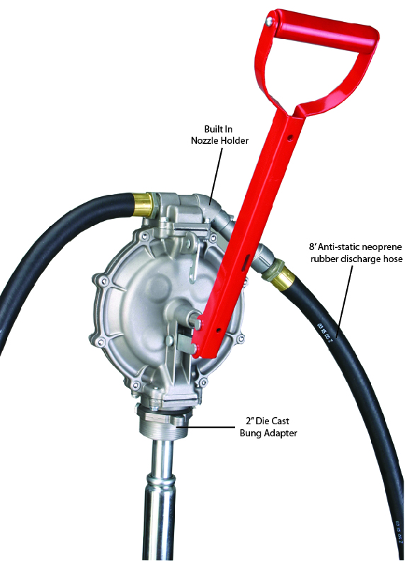 Includes 2" die-cast bung adapter and extra heavy-duty steel handle with security locking latch