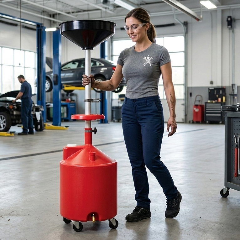 18 Gallon Plastic Waste Oil Drain with Casters