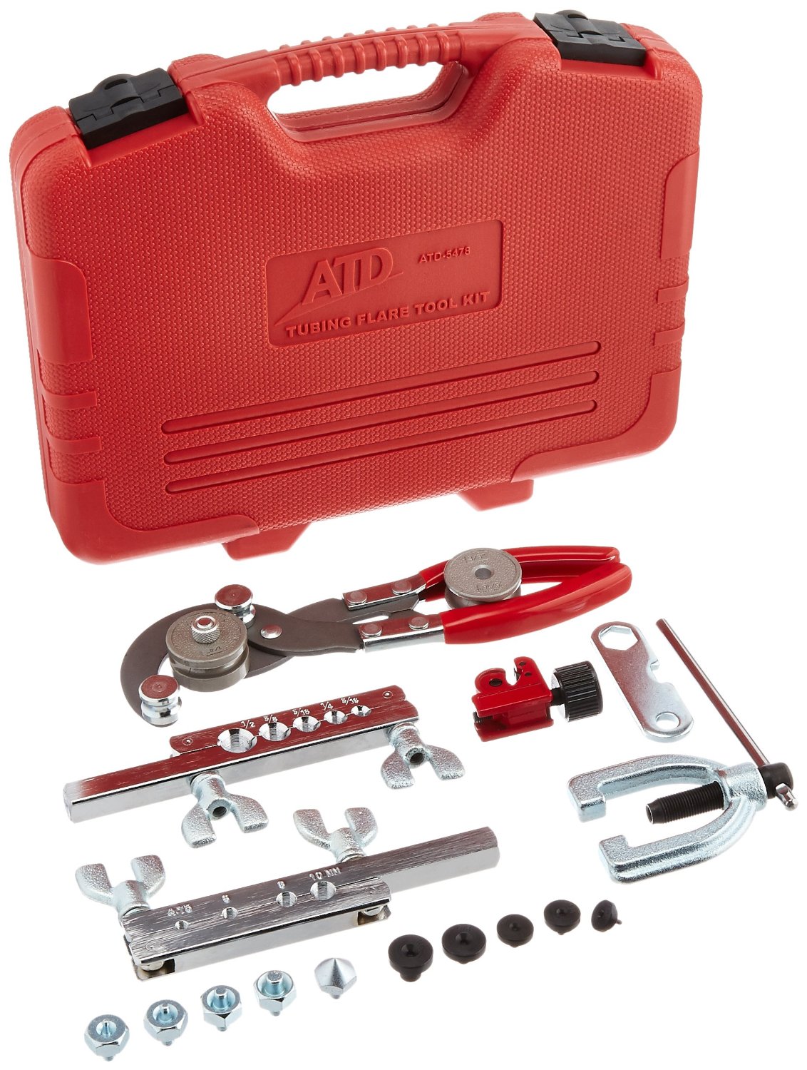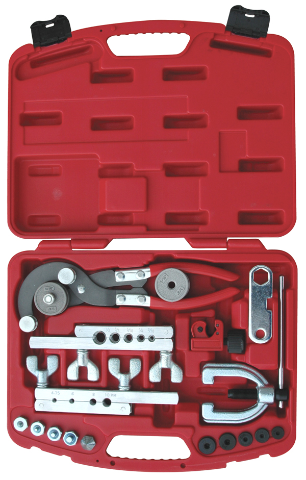 Includes cutting, bending and flaring tools designed for use on steel brake, transmission & fuel lines and copper, aluminum & brass tubing