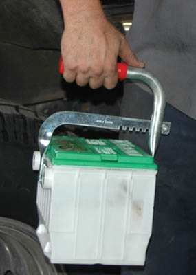 Rubber padded grips provide a firm hold on all batteries up to 7-1/2" wide